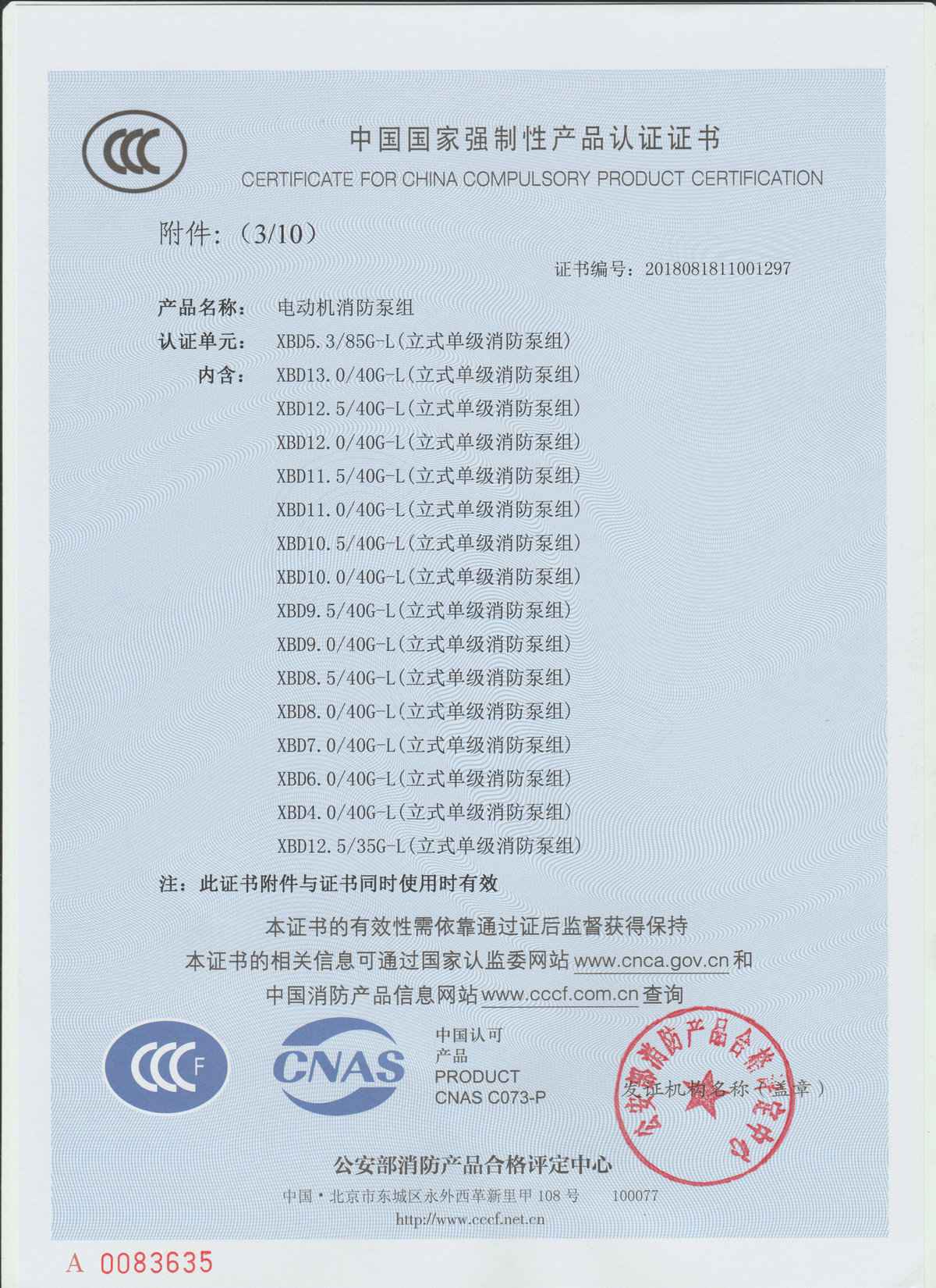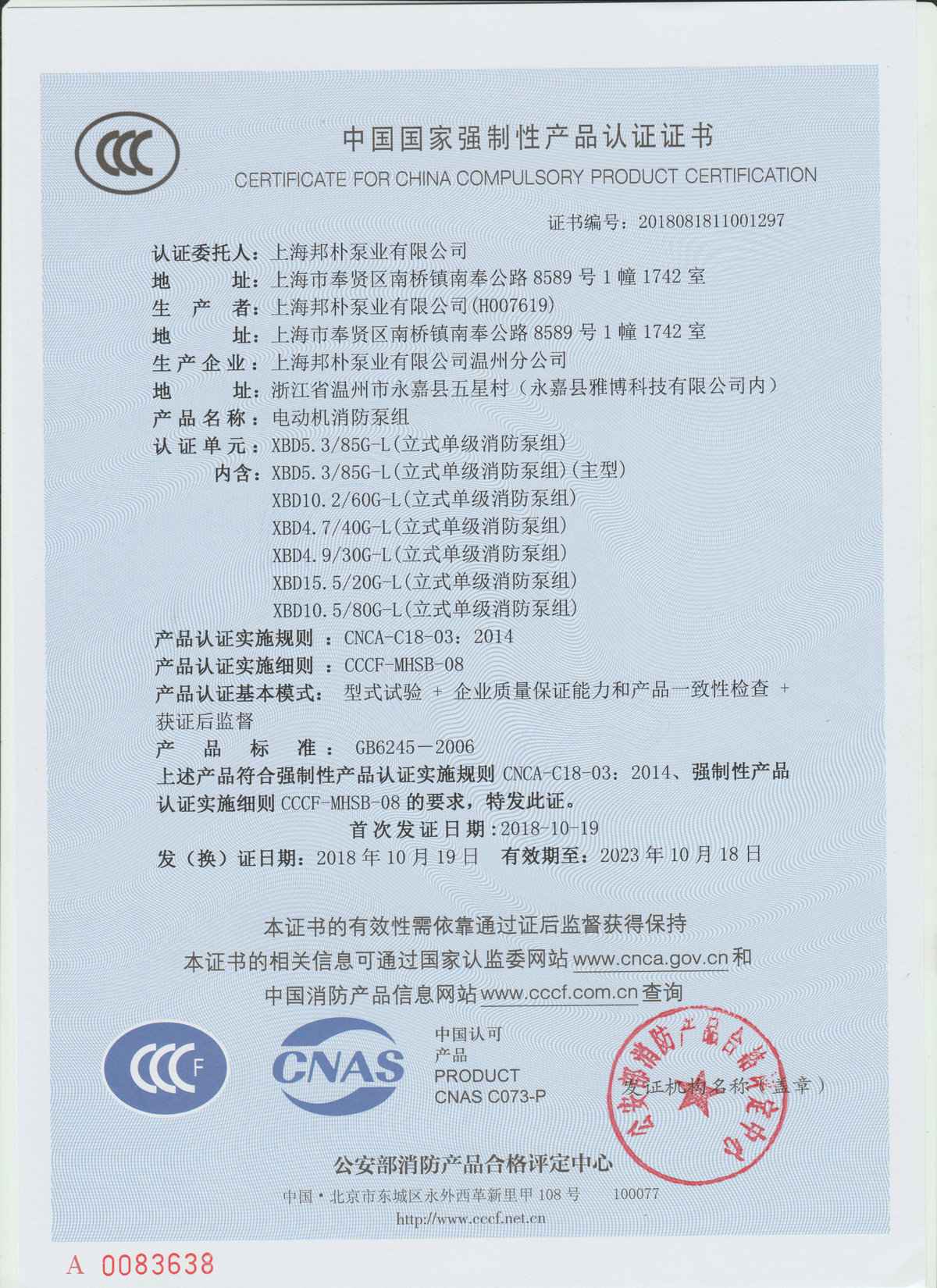 公司生产产品通过ISO9001:2015国际质量体系认证,消防系列产品取得CCCF国家强制性认证证书,通过认证型号规格达500余个,并取得全国工业产品生产许可证,产品经权威机构检测,全部达到规定要求。 公司主营产品有:生活循环泵,消防用泵,污水泵,化工用泵,二次供水设备,控制柜等。产品被广泛应用于石油、化工、冶金、矿山、发电、热力、城市建设、污水处理、消防设施、集中采暖、农业排灌等行业。